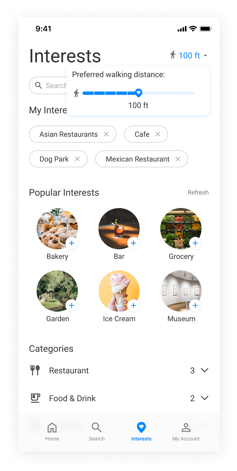 Users can quickly see and edit the interests here.