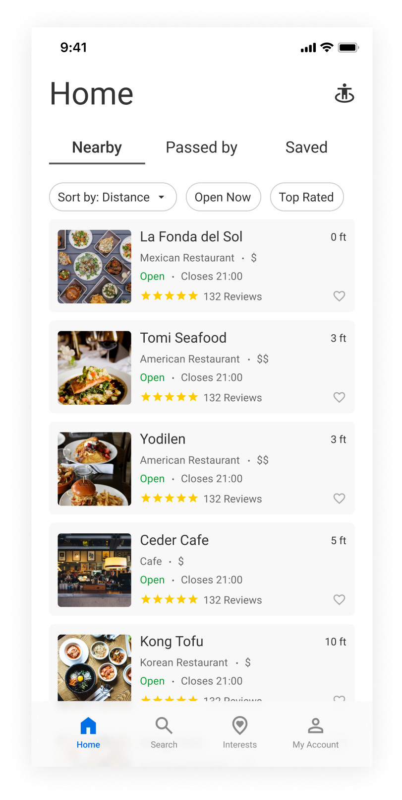 When Home is already selected, tapping it again takes you back to the Nearby tab.
