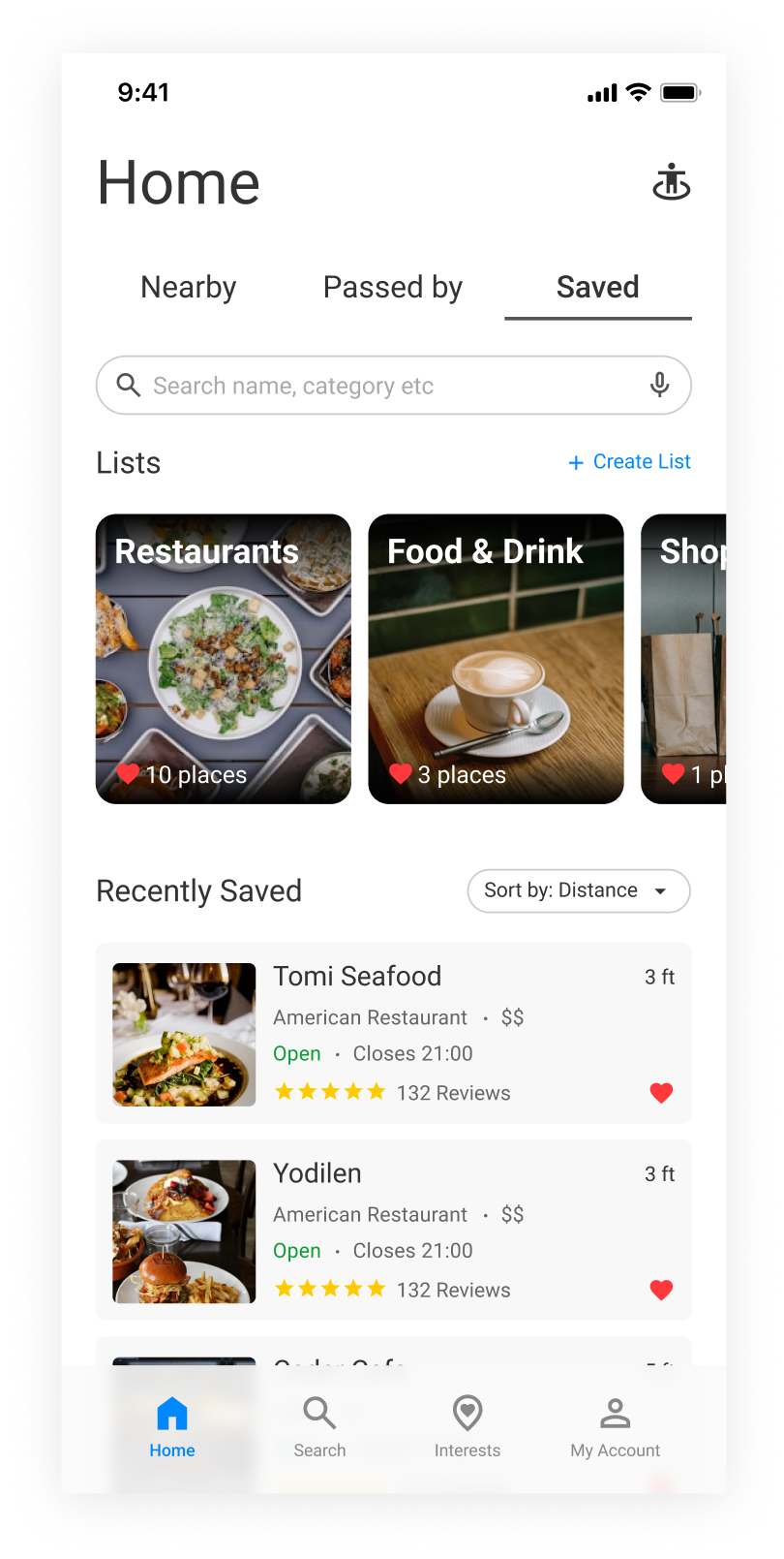 Places are auto-saved to a relevant list by default, with the option to create custom lists.
